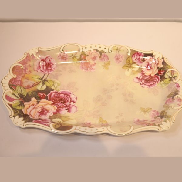 This stunning 16?10 inch floral ceramic printed platter from Illumine brings sophistication and charm to your dining collection. Adorned with delicate pink and purple floral prints and an intricately designed border, it blends timeless beauty with modern craftsmanship. Made from premium-quality ceramic, this platter is durable, easy to clean, and ideal for serving appetizers, desserts, or festive delicacies. Whether used for special occasions, family gatherings, or as a decorative centerpiece, it adds a graceful touch to any setting ? making it a perfect choice for elegant gifting or stylish home dining.
